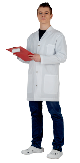 В основе медицинского халата натуральный хлопковый материал с равным количеством полиэстера для дополнительной прочности, долговечности и удобства при повседневном использовании. Стильная мужская модель халата на нержавеющих кнопках дополнена двумя боковыми карманами и одним нагрудным.