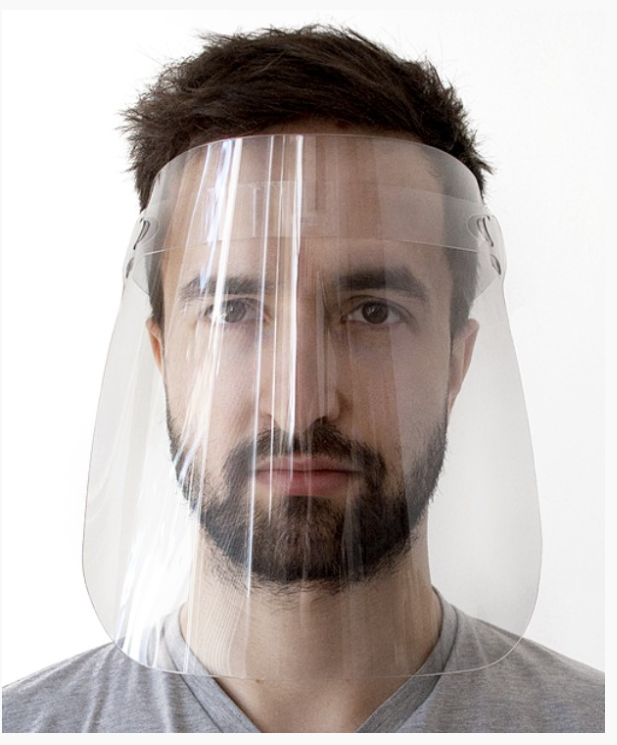 - Щиток блокирует возможность трогать лицо и снижает риск распространения инфекции.