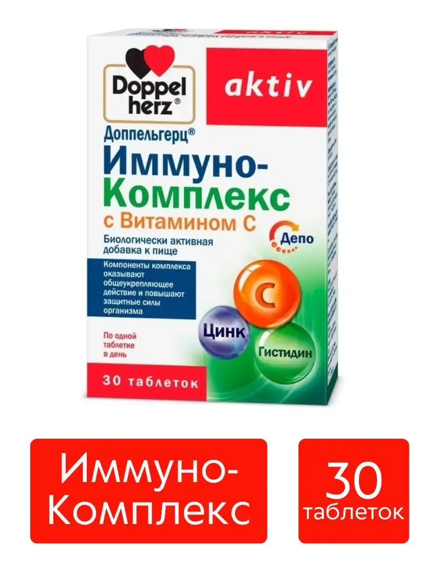 Доппельгерц актив Doppelherz aktiv Иммуно-Комплекс с витамином С и цинком, 30 таблеток