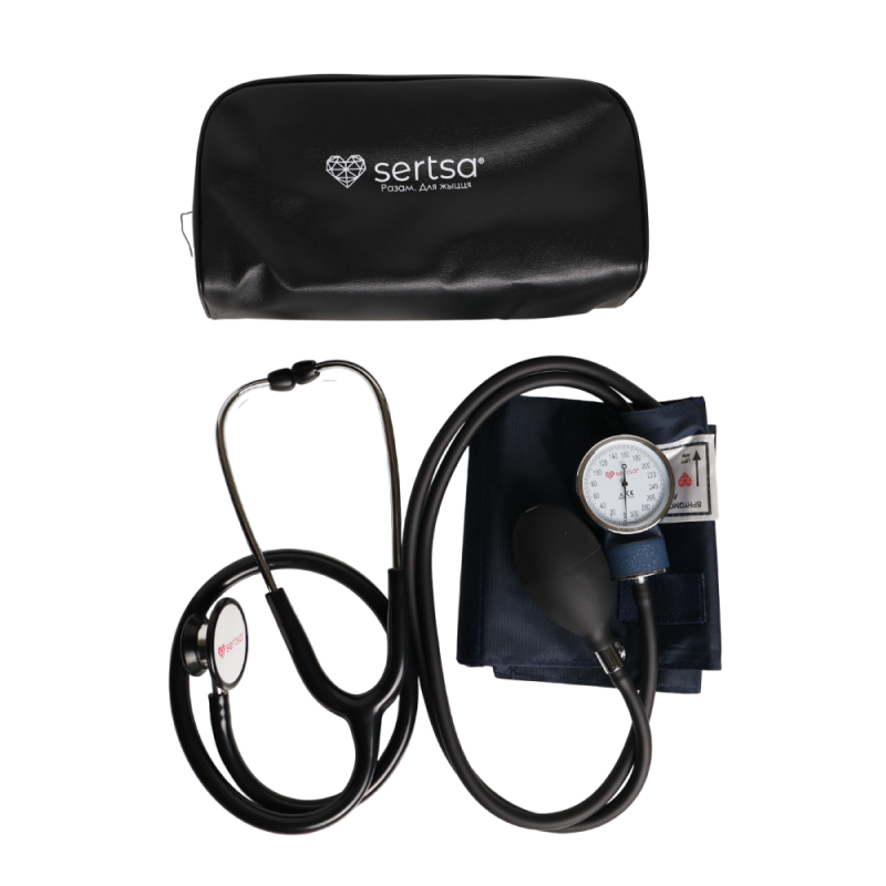Удобный и простой в использовании механический тонометр sertsa® обладает высокой точностью измерений, надежностью, долговечностью, доступностью и независимостью от источника питания. Он не требует батареек и электросети, что делает его идеальным для использования в любых условиях. Кроме того, он подходит для людей с сердечно-сосудистыми заболеваниями и нарушениями эластичности сосудов. Оснащен двухсторонним стетоскопом, который можно использовать отдельно, для аускультации сердца, легких, сосудов и желудочно-кишечного тракта у взрослых.
