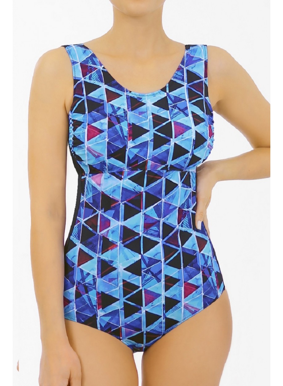 Женский купальник после мастэктомии слитный Camelia 2383, синий, черный, геометрия
